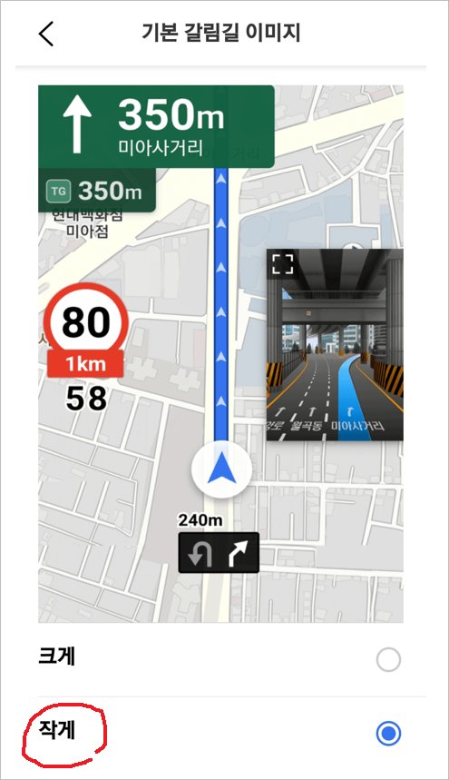 티맵 기본 갈림길 이미지 크게 작게 바꾸기