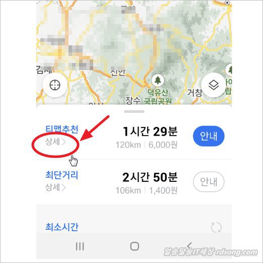 아래 나타나는 보통 2개의 경로 자주 사용하는 티맵 경로 입니다.