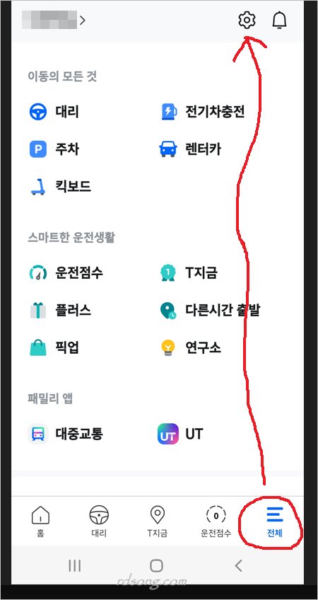 아래 하단 우측 메뉴 > 우측 상단 톱니 아이콘 터치 합니다.