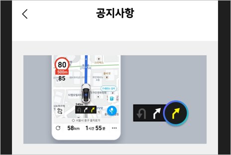 주변에 복잡한 차로가 없어서 그런지 아직 잘 모르지만, 주행 경로 아래 보면 노란색 추천차선 표시를 해준다고 되어 있습니다.