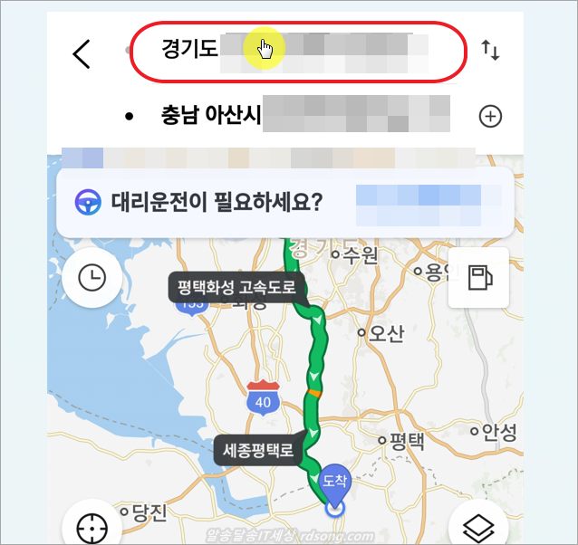 윗줄 출발지 부분을 터치 하여 주소 및 출발 장소를 바꿔 주면 됩니다.