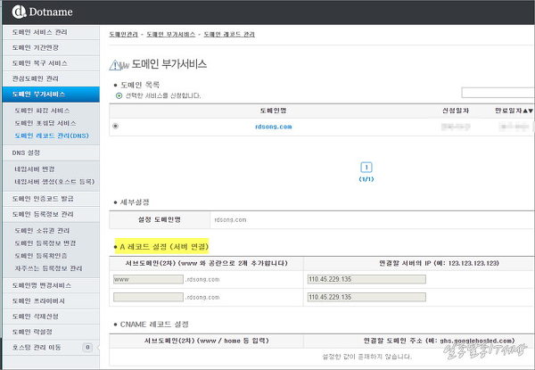 티스토리 2차도메인 블로그 DNS설정 CNAME 레코드로 변경 [ 닷네임코리아 ]