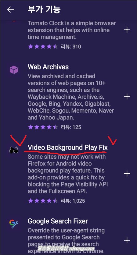 모바일 파이어폭스 부가기능 video background play fix 설치 하여 핸드폰 화면 꺼도 유튜브 음악 편리 하게 듣는 방법 마칩니다.
