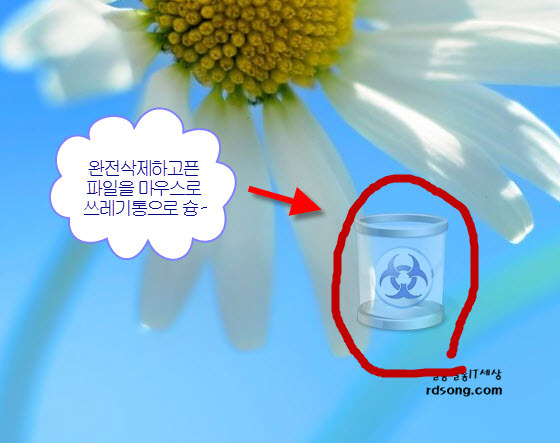 파일을 완전하게 지우고 싶은 파일을 마우스로 휴지통에 슛 넣어버리는 겁니다