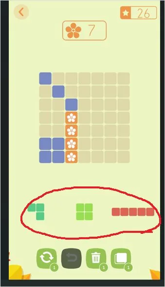 하단의 블럭을 꽃 모양 라인으로 드레그 하여, 해당 라인을 클리어 하면 됩니다.