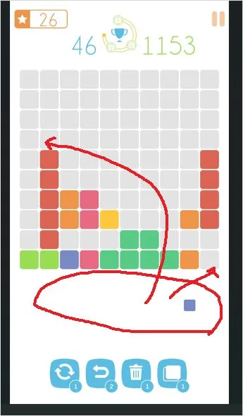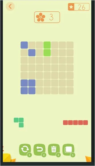 하단에 뜨는 3가지 중 하나의 블럭을 드레그 하여 바둑판 처럼 생긴 곳에 드레그 하여 올려 놓아 채우게 되면 가로, 세로 중 모두 채워지면 그 라인이 사라지며 클리어 되는 퍼즐 게임 입니다.