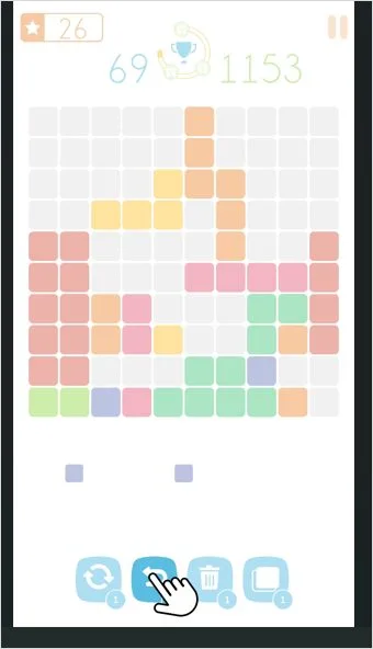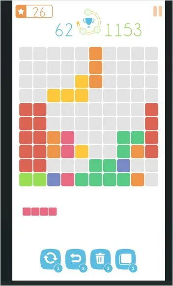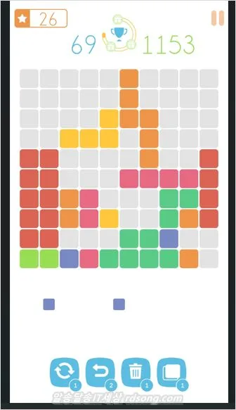 하단의 3개 블럭 중 하나를 , 바둑판 모양으로 드레그 하여 가로, 세로 중 한곳을 블럭으로 채워 주면 그 라인이 제거 되면서 클리어 되는 게임 입니다.