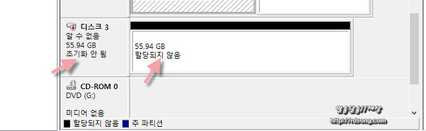윈도우를 재부팅하고 다시 하드디스크 상태를 확인해보니 아래처럼 하드디스크 상태 초기화 안됨으로 보이는데