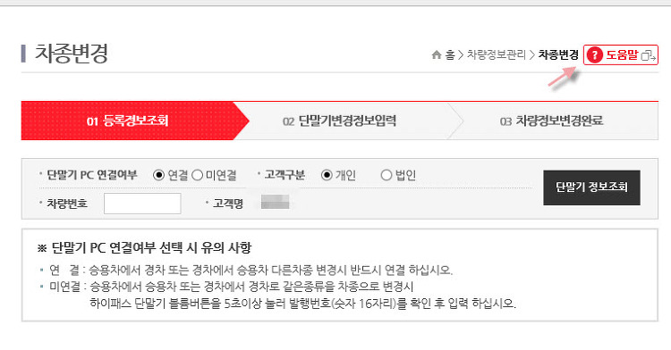 하이패스 차종변경 등록 하기 , 하이패스 단말기의 차종변경