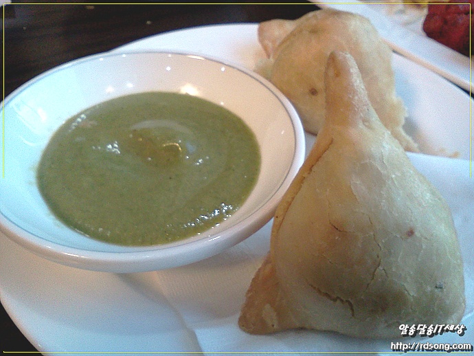 아래 초록색 소스는 영~ 제 스타일이 아니라 도저히 오~노! 였습니다 전에 먹었던 인도 음식점에서는 그럭저럭 맛이 괜춘했는데 향이 너무 강해서 그런가…제 입맛에는 거부를 하네요