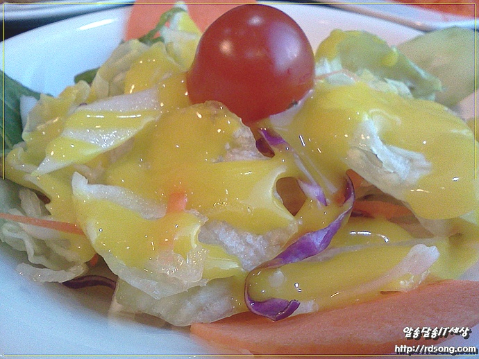 샐러드는 뭐 오십보백보 우리가 먹는 음식과 별반 차이 없는 거 같고요 맛 느끼 할때 함께 먹기 위해 ..
