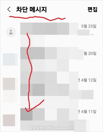 차단 메시지 보니 여기 문자 메시지 들어 와 있습니다.