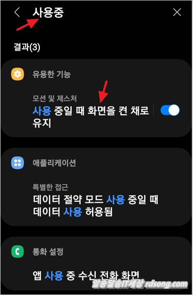 검색에서 사용중일때 화면을 켠채로 유지 바로 나옵니다.