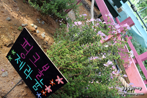 내부에 땀스럽게 허브와 꽃들이 많이 피어 있었는데 허브향기 맡고 허브에 대해서 푯말로 잘 적어 놓아