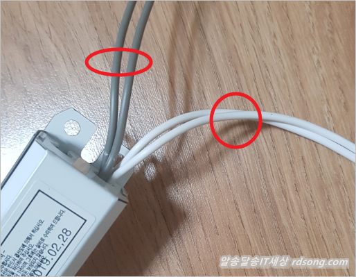 아래 새로 구입한 55w 형광등 안정기 부착 하고 나서 전원선은 맨 마지막에 연결하면 됩니다