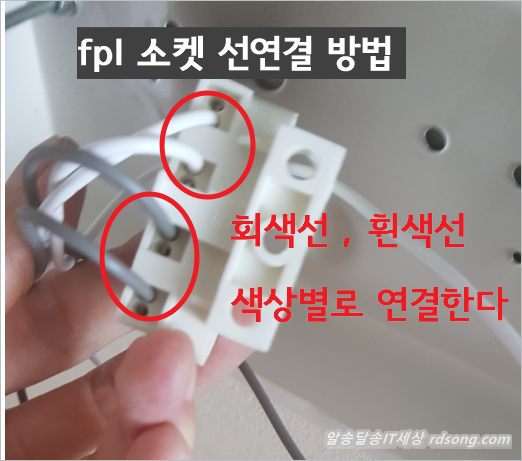 fpl 소켓에 선연결은 회색선 2개, 흰색선 2개 끼리끼리 몰아서 끼워 주면 됩니다