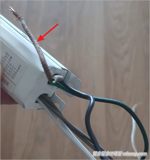 교체한 형광등 55w 2등용 안정기 전력선 하나가 상당히 노후 되어 있네요 건들면 부스러 집니다