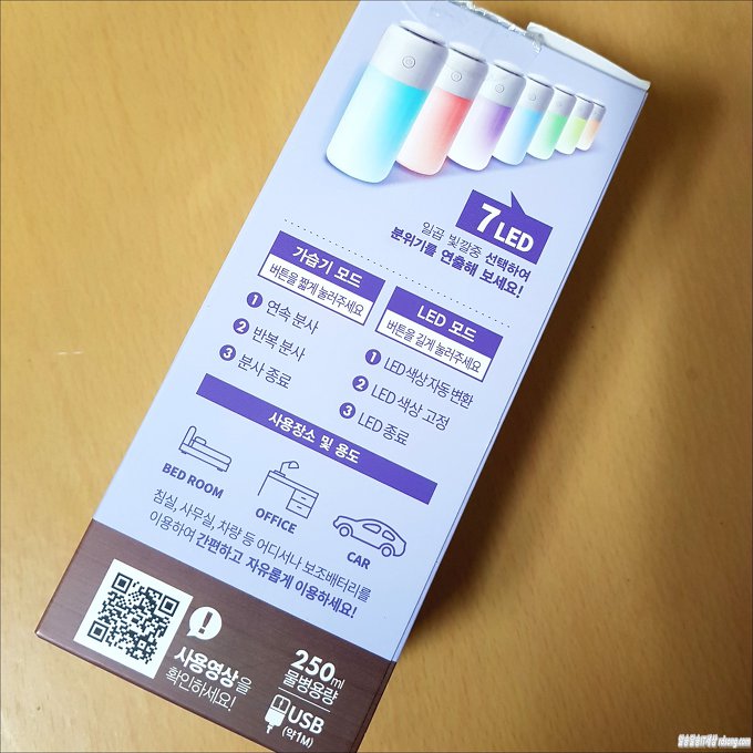 휴대용 가습기 7가지 색상 LED 모드가 있는 것을 보면 5천냥 짜리 치고는 기능이 괜춘하죠