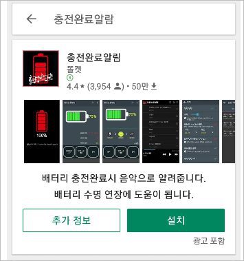 휴대폰 배터리 충전 완료 알림 Battery full Notification 안드로이드 어플 설치