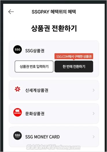 신세계 상품권 전환하기