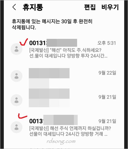 해외문자 스팸문자를 휴지통 보냈다가 더 이상 안오겠지 했는데 , 어허!  주기적으로 옵니다! 잊을만 하면 열받게,