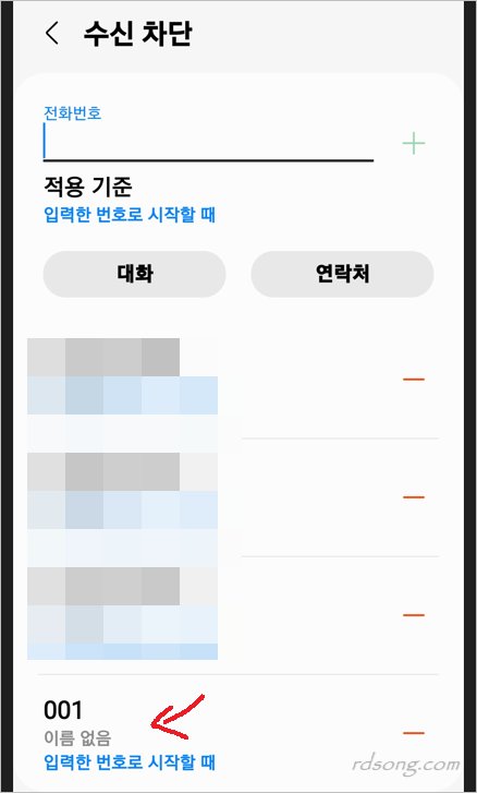 수신차단 목록을 살펴 보면 맨아래 적용이 된 것을 볼수 있습니다.