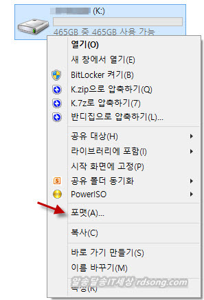 윈도우8.1 기준으로 설명하자면 내PC 또는 윈도우 탐색기를 이용한 외장하드 포멧하는 방법