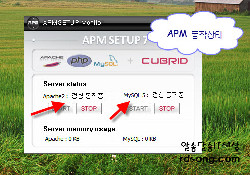 윈도우7 부팅할 때 apm서비스파일이 로딩되므로 부팅이 좀 느려질수도 있으므로 설치 후 apm을 사용하지 않을 때는 apm을 중지시키면 부팅로딩속도에 도움이 되실 겁니다
