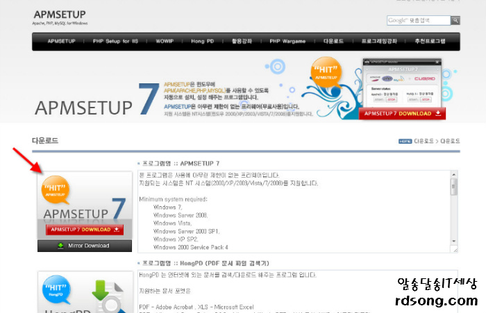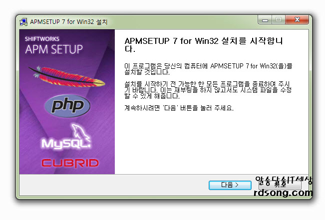 APMsetup7 설치하는 방법은 apmsetup홈피에서 다운받아 설치만 해 주면 쉽게 설치됩니다