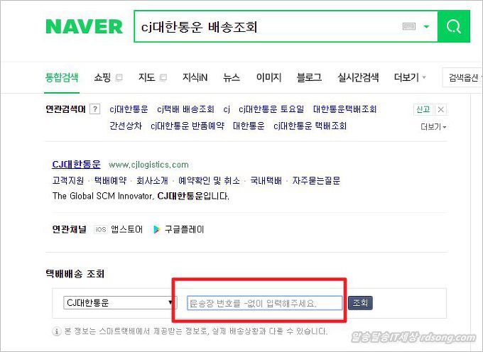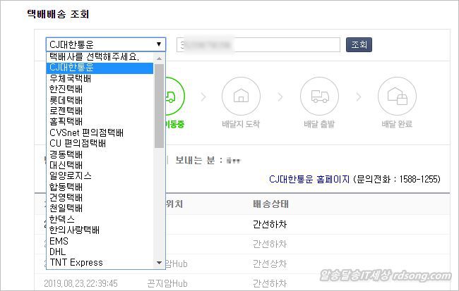 cj대한통운 홈페이지 에서 운송장번호 택배조회 :