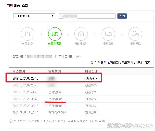 직접 네이버에 운송장번호 입력후 검색해 보면 바로 아래 화면이 뜨죠