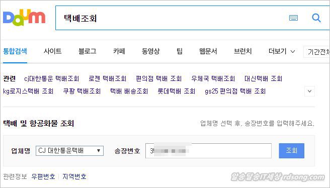 daum 홈페이지에서 cj대한통운 택배조회 해 보니 , 바로 cj대한통운 홈페이지로 바로 접속하여 택배조회를 합니다