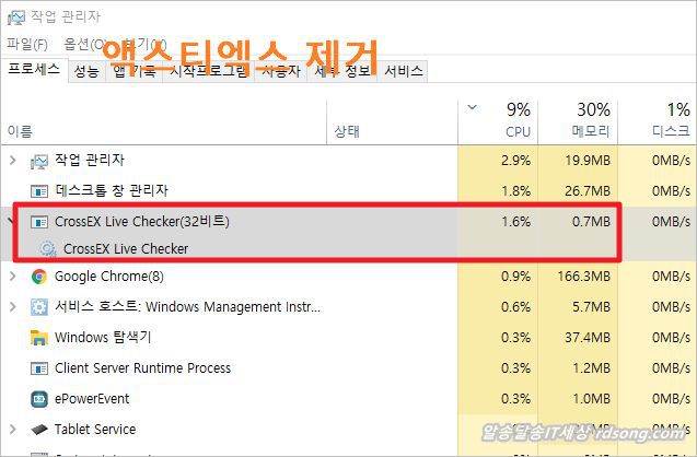 cpu 점유 crossEX live checker 액티브엑스 제거 하자