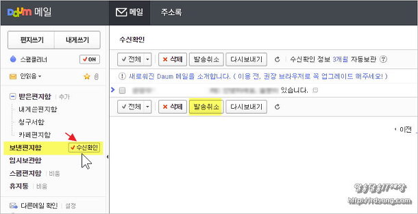 daum메일이 언제 부터인가 갑자기 개편이 되었는데 다음 보낸 메일 발송 취소 할수 있습니다.