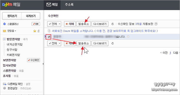보낸메일함 – 수신확인 – 발송취소 [ 읽지 않음 상태 ]