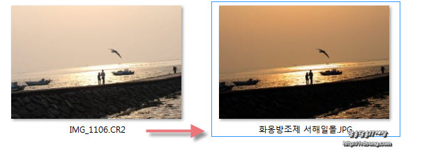 CR2 RAW이미지로 된 원래 사진 좌측과 우측 변환후 사진에 대한 느낌이 다르다는 것을 말입니다