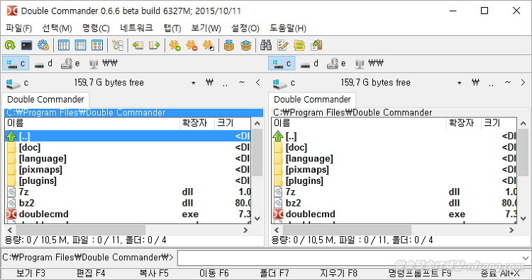 더블커맨더는 위와 비슷하지만 ftp 접속이 지원되고 네트워크 지원이 된다 그리고 영문으로 설치하더라라도 한글메뉴가 지원이 된다