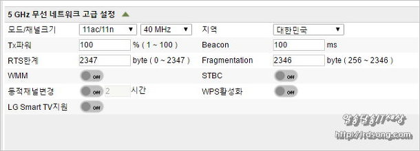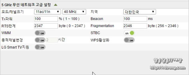 주변에 와이파이 많아서 그런가 무선신호 품질이 저조 합니다 STBC 끄고 이와 함께 WPS활성 과 WMM도 off 시켰습니다 와이파이 끊긴다면 이 옵션을 켜거나 또는 끄면 됩니다