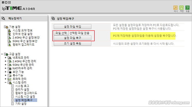 Iptime 유무선공유기 설정파일 백업과 설정파일 복구 및 Iptime 초기화 하는 방법