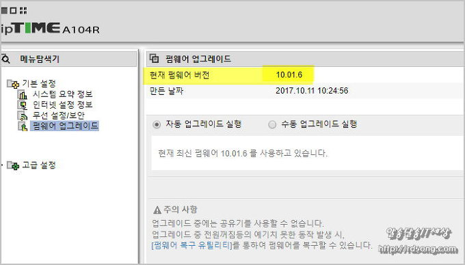 iptime 펌웨어 10.01.6 업그레이드 및 iptime 펌웨어 업그레이드 실패시 복구 방법