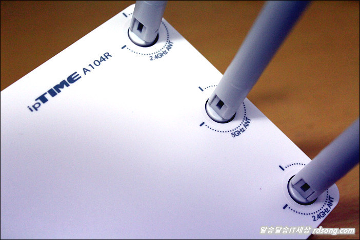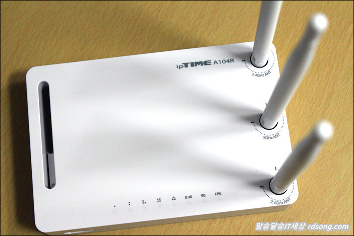 iptime A104R 유무선 공유기 5db 안테나가 3개가 달려 있고