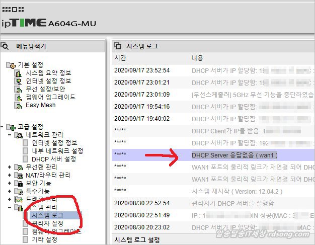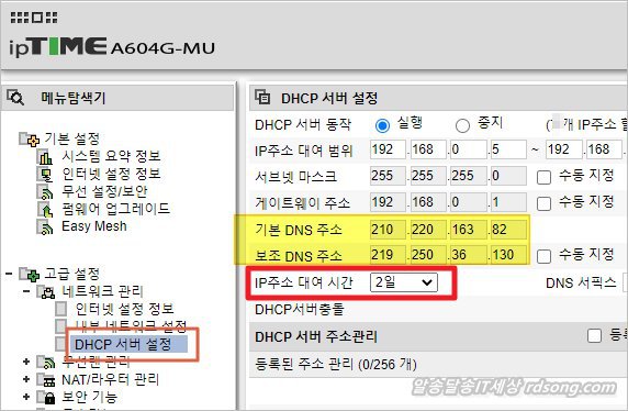 iptime dhcp IP주소 대여시간 2일 변경 이유 – 인터넷 끊김 및 와이파이 접속 후 인터넷 되지 않아서 변경을 해 봤습니다.