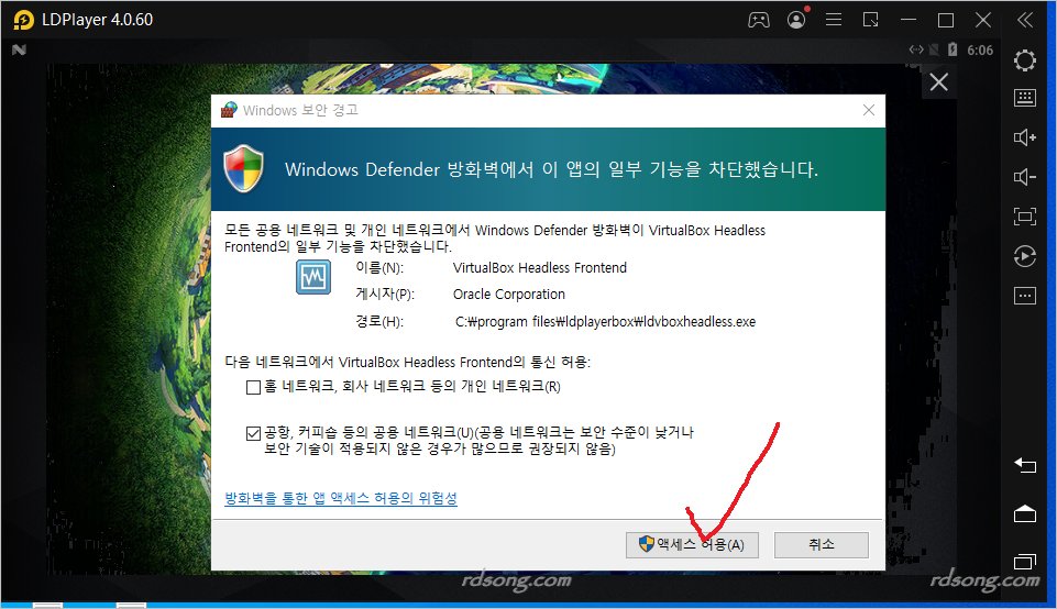 ld플레이어 윈도우 디펜더 방화벽 액세스 허용