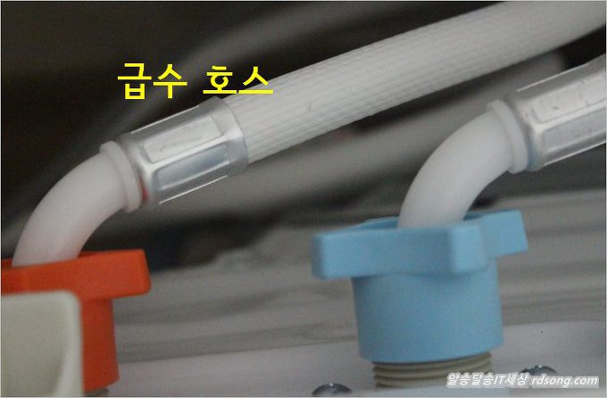 세탁기 후면 온수급수 / 냉수급수 호스 연결 상태 :