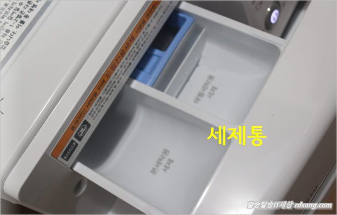 드럼 세탁기 전용 세제를 쓰도록 되어 있습니다. 너무 많이 세제 투입하면 거품이 많이 생기므로 적당히 투입.