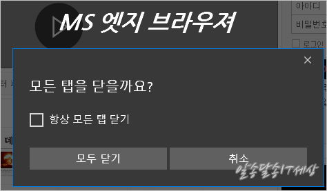 MS 엣지 종료할 때 마다 모든 탭 닫을까요? 뜨는 문제?