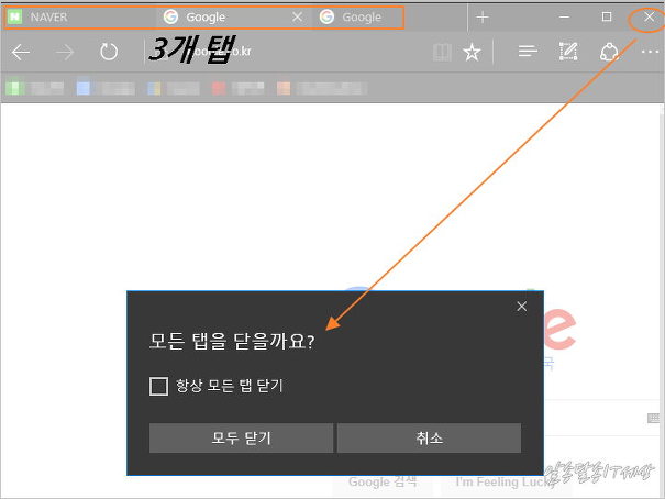당연히 엣지에서 여러개의 탭이 열려 있는 상태에서 엣지 종료 하여 닫게 될때