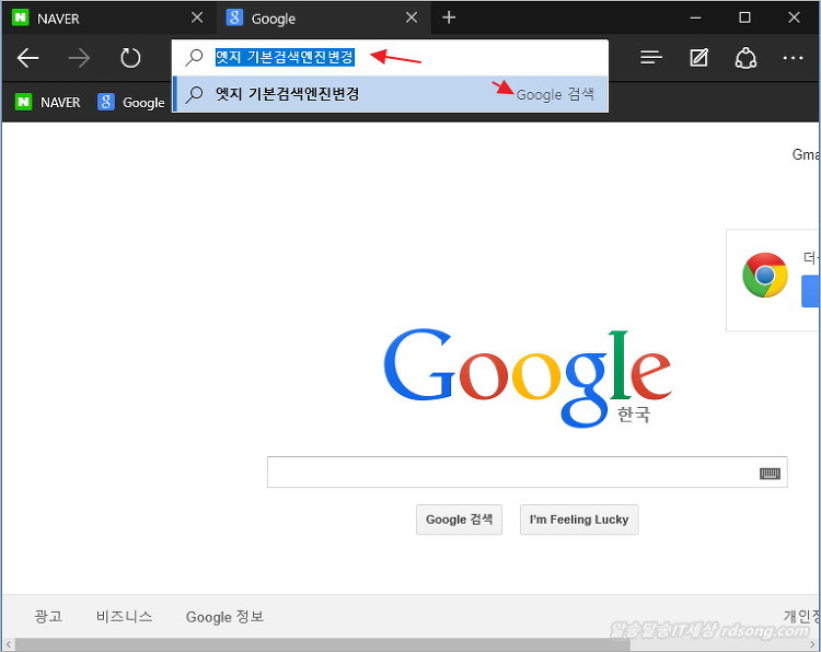 기본 검색엔진 변경하지 않고 그냥 네이버 홈피 뜨우고 검색하는 것이 더 편하겠죠