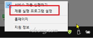 뭔 자동? 수동으로 바꿀랍니다. 컴퓨터 너무 버벅 느리게 만들기 때문에 , 이 프로그램이 실행 되면 작업표시줄 우측 하단에 녹색모양 아이콘 마우스 우측 클릭 합니다. 그러면 아래처럼 서비스 자동 실행하기 체그 (새로 설정 적용후 체크가 해제됨) 되어 있는데, 제품 실행 프로그램 설정 > 으로 가서 바꾸면 됩니다.