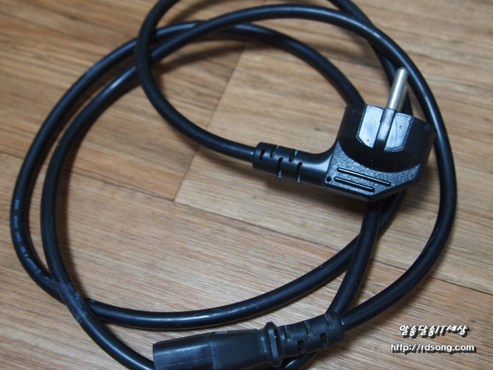 굵기가 조금 가늘더군요 전기가 잘 통하고 문제가 없이 컴이 잘 굴러가면 장땡이겠지만 예전에 파워케이블이 불량나서 컴퓨터가 켜지지 않는 것을 보아 왔던 기억이 있어서 여분으로 가지고 있던 다른 PC파워케이블로 갈았습니다
